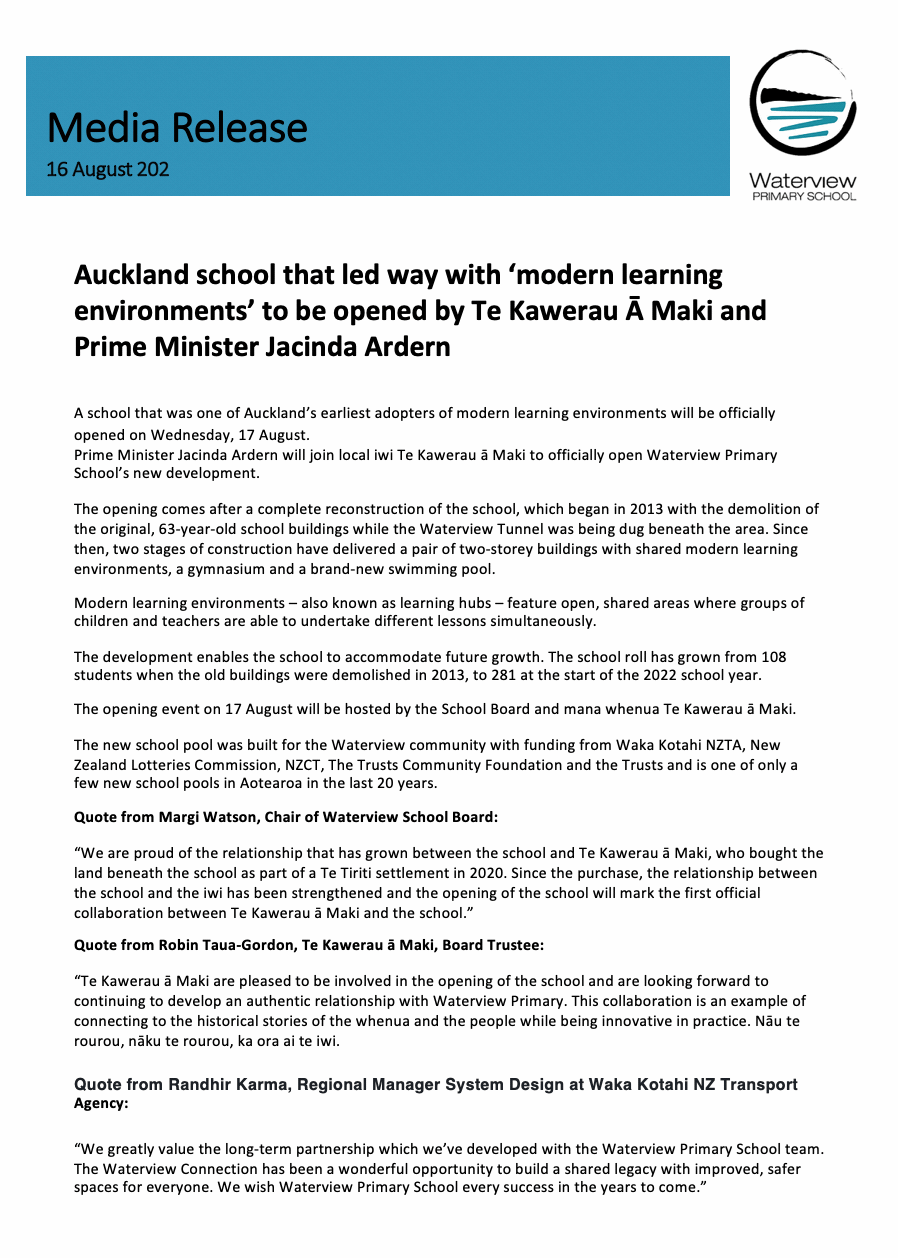 Ph: 09 8287227 | Email: office@waterview.school.nz